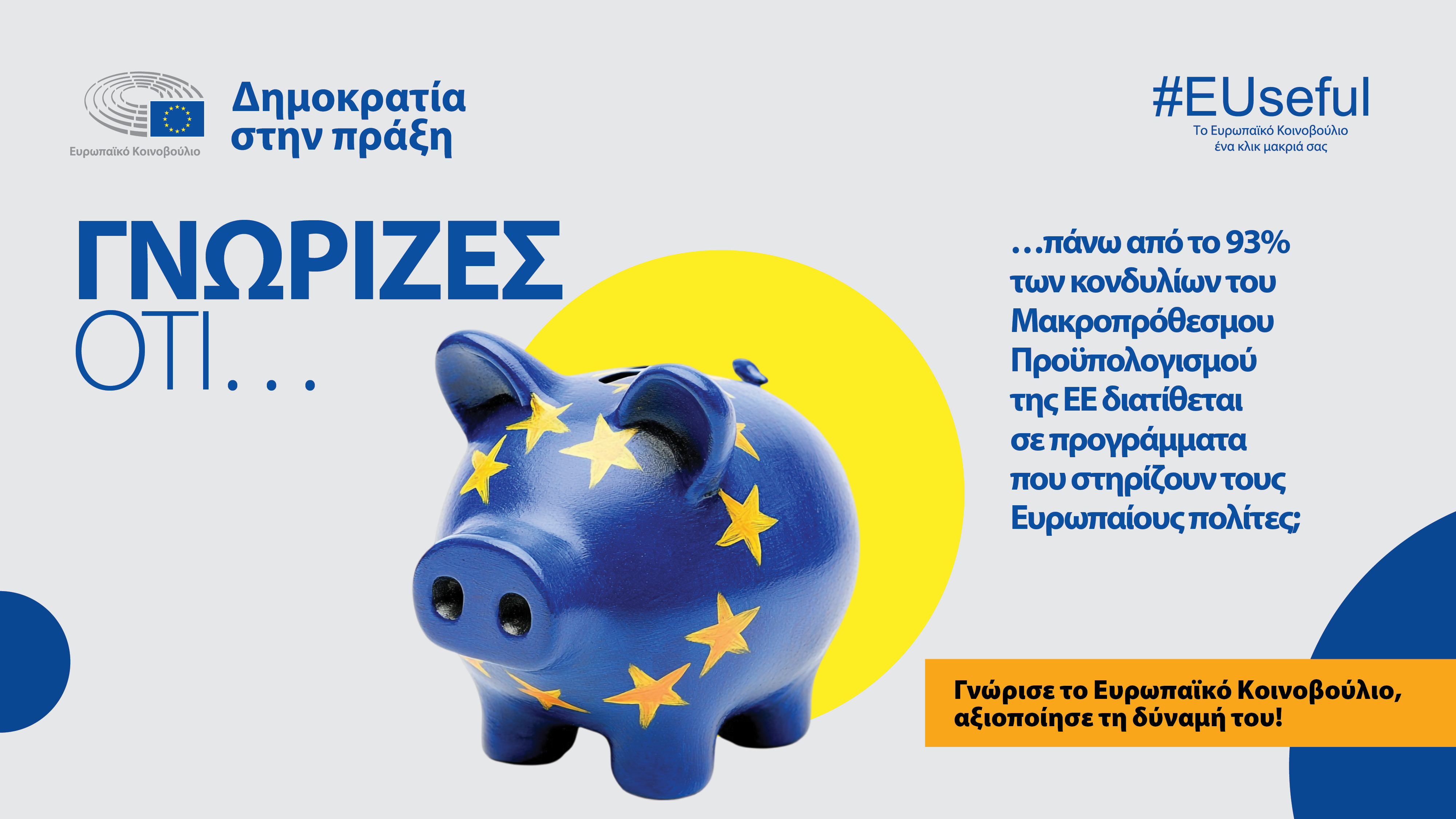 Ο μακροπρόθεσμος προϋπολογισμός της ΕΕ οδηγεί τις επενδύσεις στο μέλλον της Ευρώπης, βελτιώνοντας τη ζωή των πολιτών. Χρηματοδοτεί κοινά έργα και υλοποιεί προτεραιότητες από την οικονομική ανταγωνιστικότητα έως τη γεωργία. Ανακαλύψτε τα οφέλη του προϋπολογισμού της ΕΕ και μάθετε πώς λαμβάνονται οι σχετικές αποφάσεις.