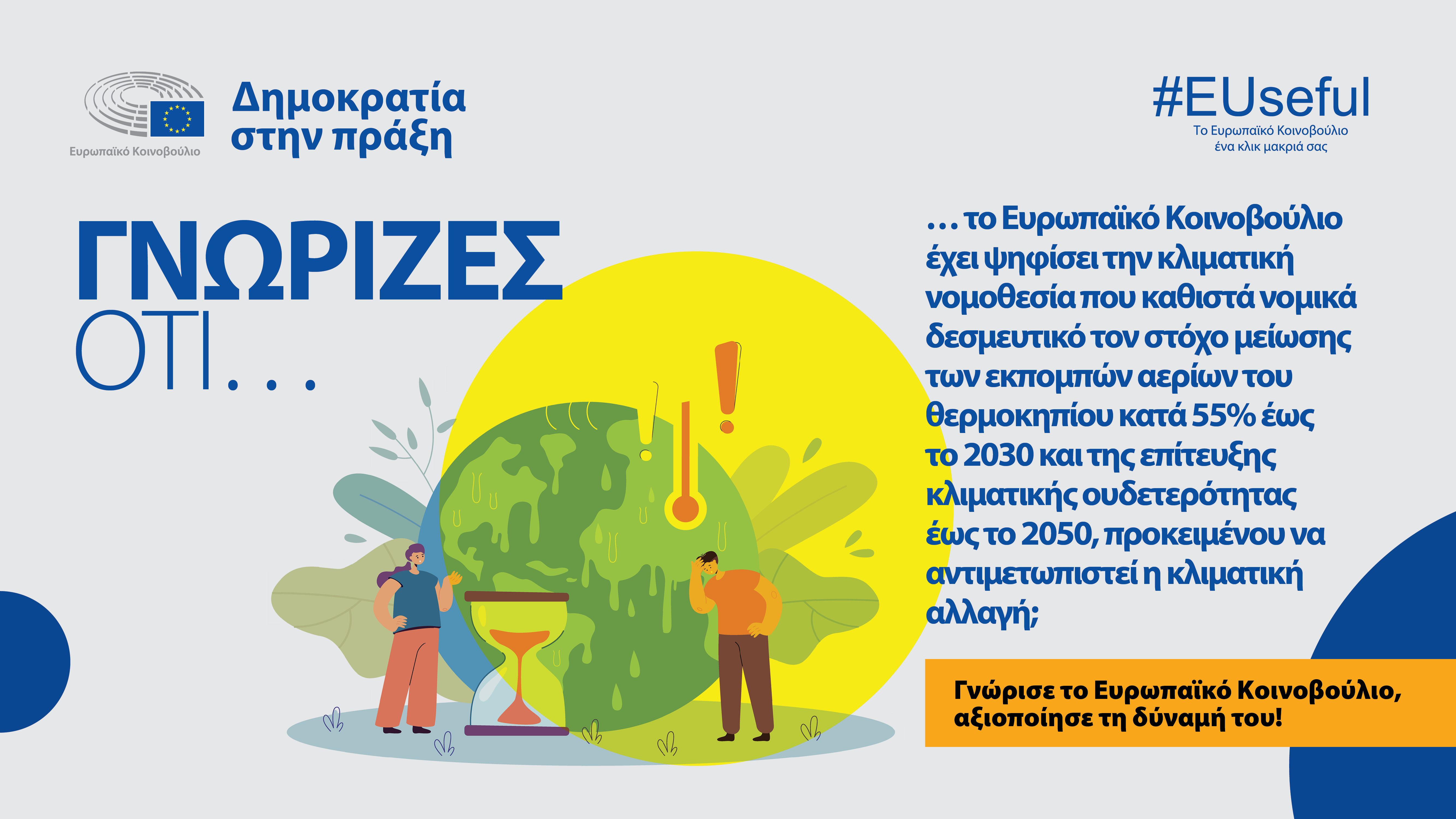 Το Ευρωπαϊκό Κοινοβούλιο -ο θεσμός που οι πολίτες εκλέγουν απευθείας για να συν-νομοθετεί στην Ευρωπαϊκή Ένωση- παράγει λύσεις που απαντούν στις προσδοκίες τους για προστασία και πρόοδο σε έναν κόσμο που μεταλλάσσεται ραγδαία